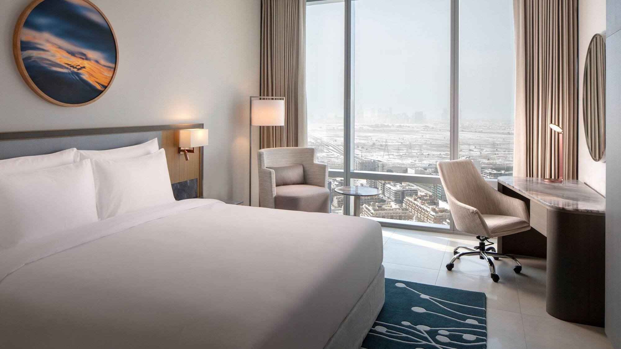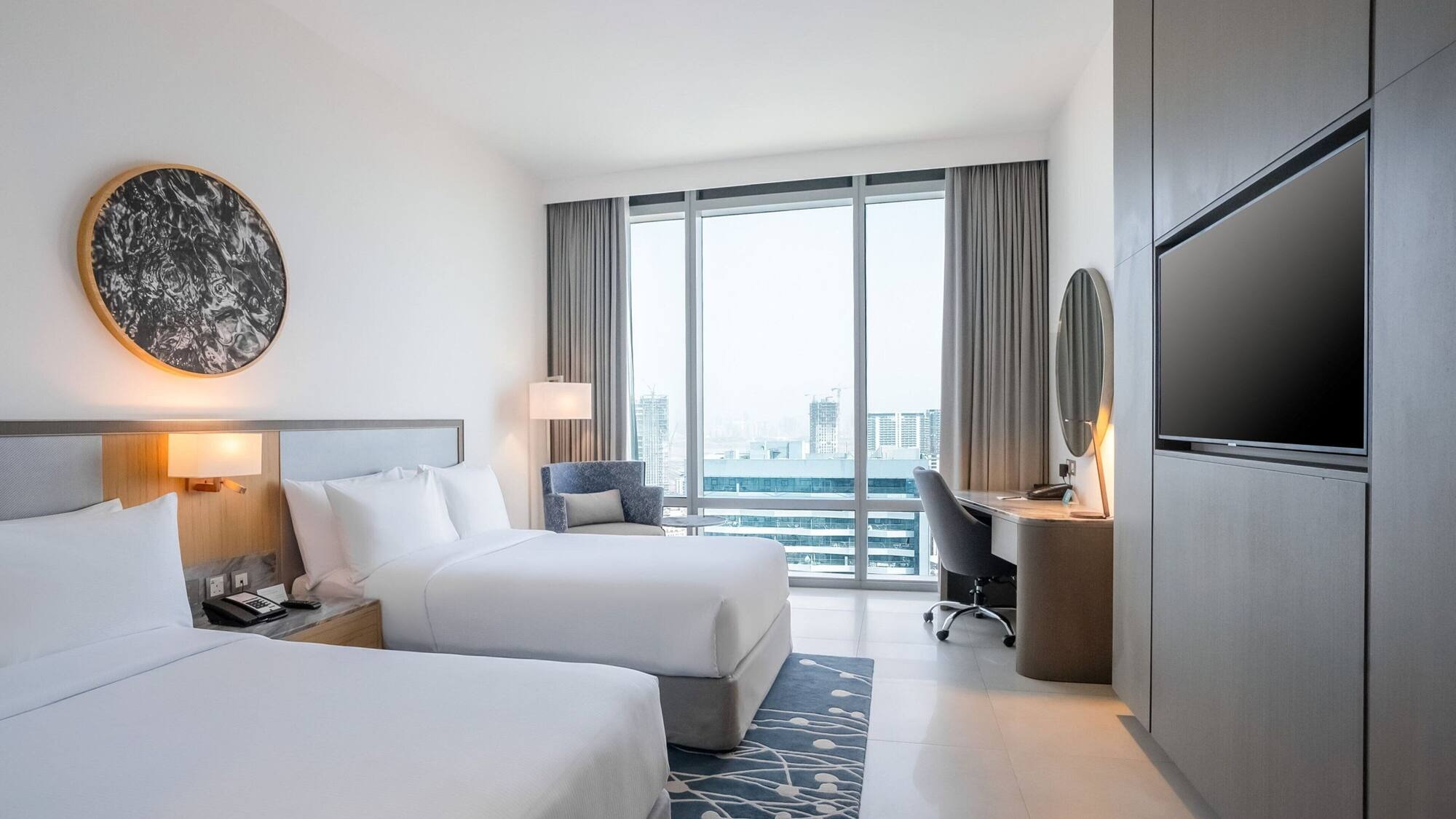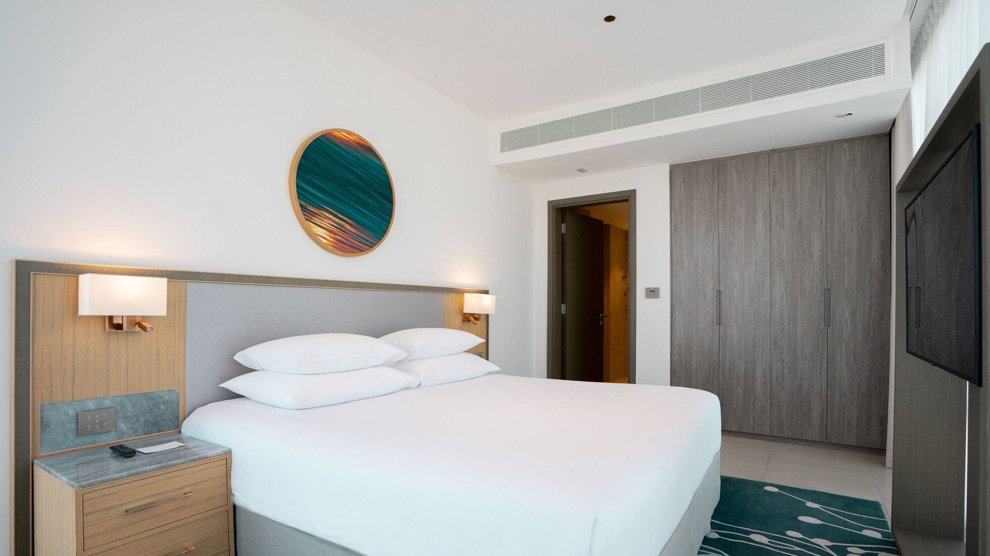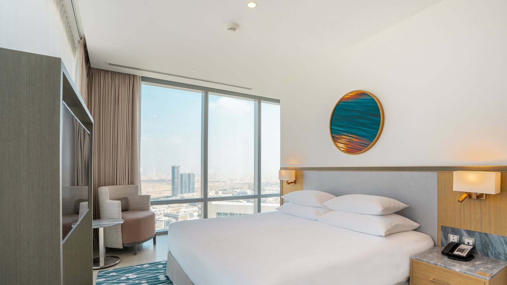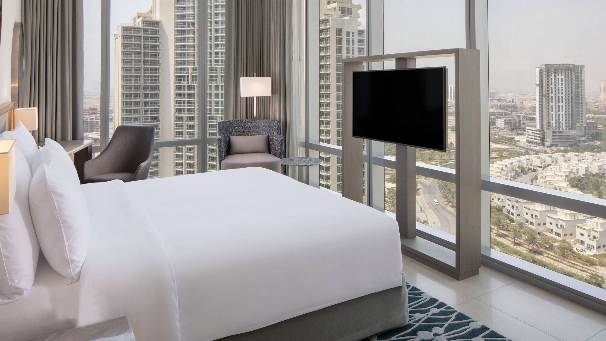 Двухкомнатный люкс включает в себя спальню с кроватью размера king-size, гостиную с комплектом мягкой мебели и ванную комнату с душем/ванной. Из удобств 2 телевизора, кондиционер, телефон, мини-холодильник, утюг и фен. Предусмотрены привилегии (доступ в клубный лаундж, безалкогольные напитки, обслуживание в вечернем баре).